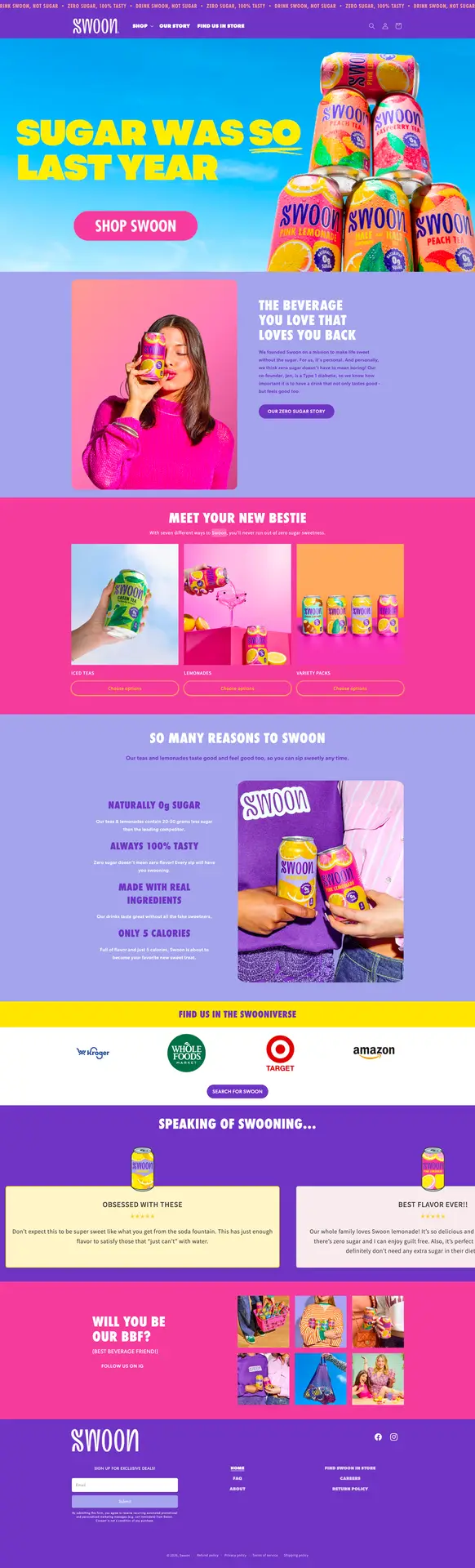 Swoon’s mission centers on making better-for-you drinks that don’t compromise flavor. Their beverages are naturally sweetened to keep sugar at zero without sacrificing taste.