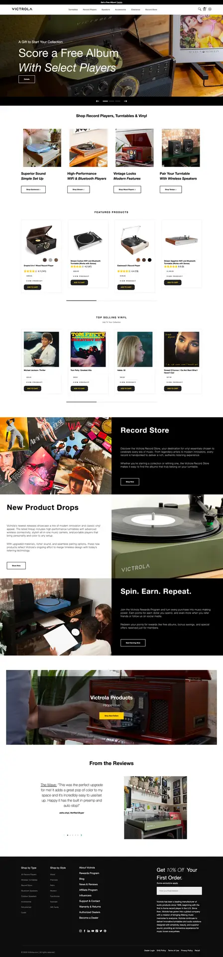 One really neat aspect of the Victrola website is their blend of vintage and modern within the user experience. This pairs tightly with their product, providing a unified brand cohesion. It allows customers to experience the brand in a fuller way, maximizing customer loyalty at this important touch-point in their journey.